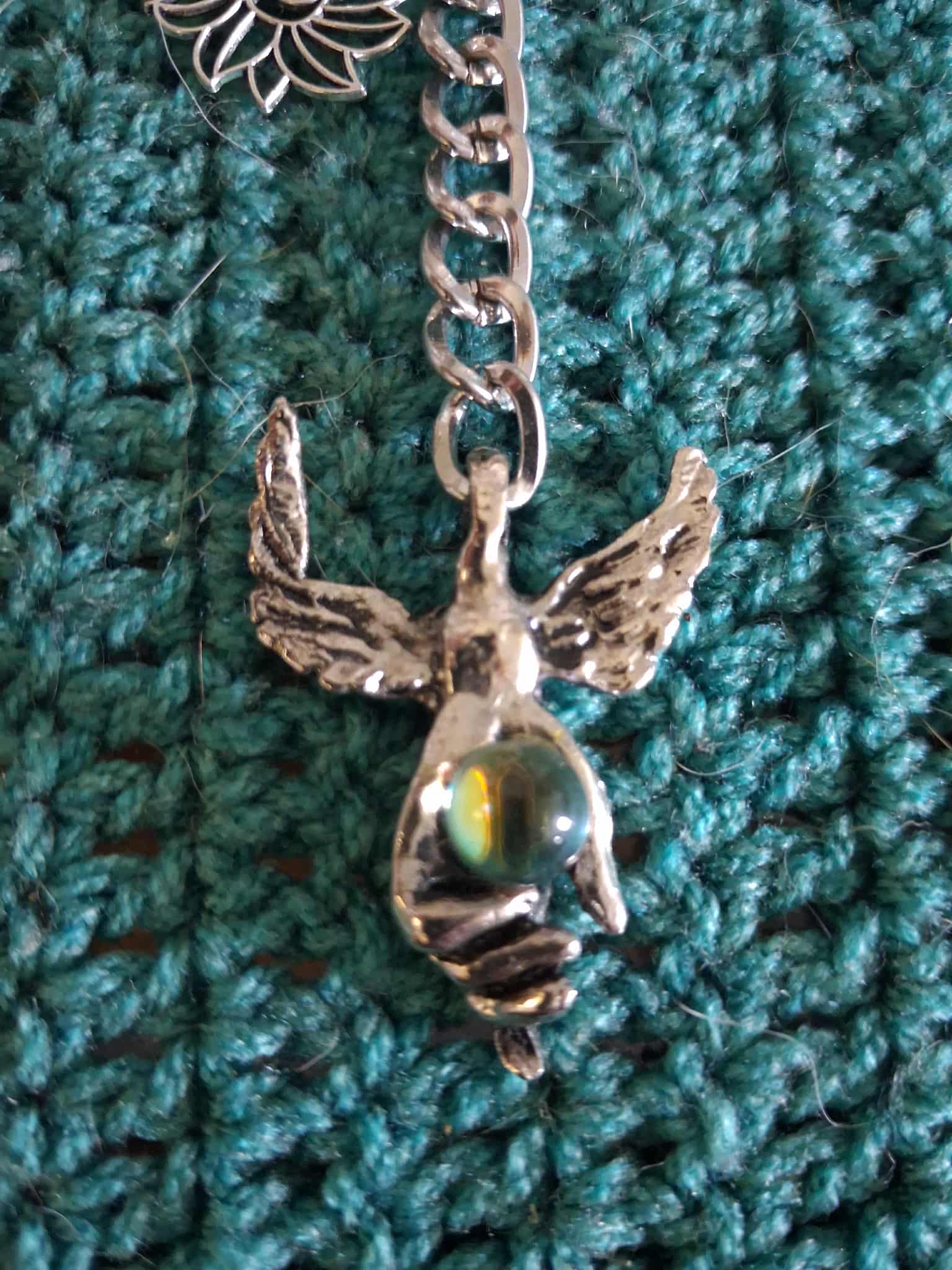 Silver Angel and Flower Charm Keychain Delicate sterling silver charms unite in this thoughtfully crafted keychain—an angel figure paired with an intricate flower bloom. The polished silver finish catches light beautifully, while the dual-charm design offers symbolic meaning: protection and natural grace. Lightweight yet substantial, it attaches securely to keys, bags, or everyday carry items. A refined accessory that balances sentimental value with practical function, ideal for personal use or as a meaningful gift.